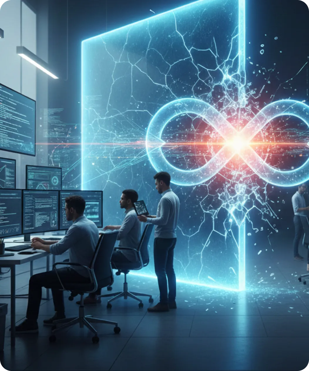 We start by mapping your infrastructure, codebase, and workflows. Our consultants identify friction points and design a DevOps maturity model.